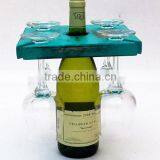 Blue Painted Solid Wooden Wine and Glasses Organizer Holder