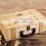Natural Color Unfinished Solid Wooden Wine Box,wine Bottle Boxes Wood With Handle