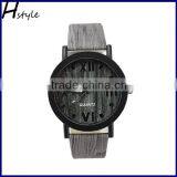 Unisex Roma Dial Round Table Teak Wood Grain Strap Quartz Analog Wrist Watch WP0001