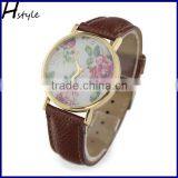 New Fashion Geneva Watches Women Floral Quartz Watch Leather Flower Watch Brown WP013