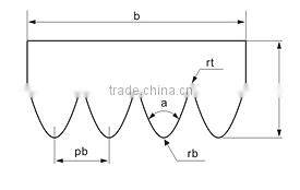 Type  | Ribsection(mm)  | Angle of rib(o)  | Belt Thickness(mm)  | Rib Numbers  | Length range  |