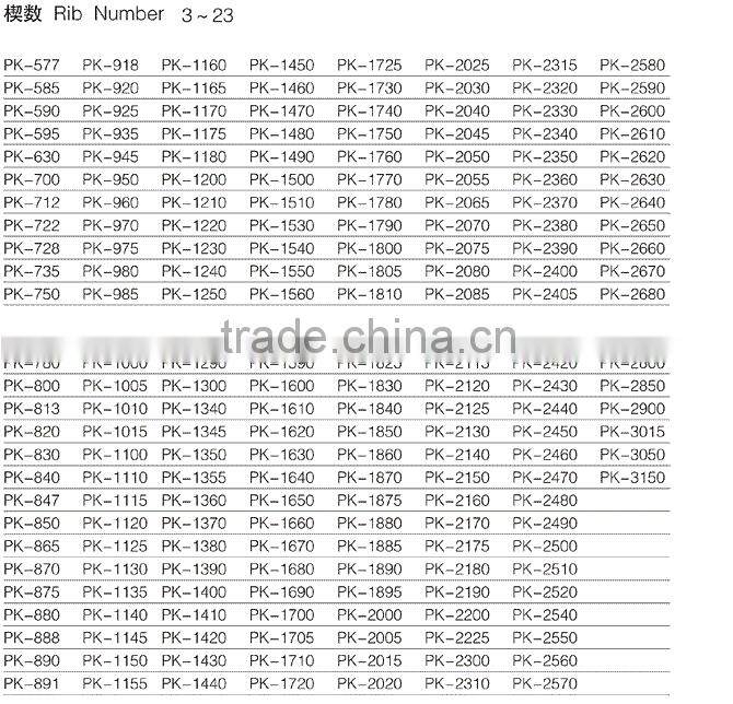 3PK, 4PK, 5PK, 6PK, 7PK, 8PK, 9PK, 10PK, 12PK, 24PK, 36PK,RIBBED BELT,POLY V BELT,PK BELT