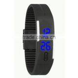Black and White With Blue Led Mens Kids Adjustable Rubber Sports Watch Bracelet