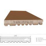 This type of WPC profile with two sides groove designing for slip resistance, can be used as floor board, be installed on the outdoor ground, trestle road and garden path, and perform outstanding superiority in the outdoor decking of courtyard, park, garden community, waterscape, seashore path or gazebo, trestle and plank road, dock, etc