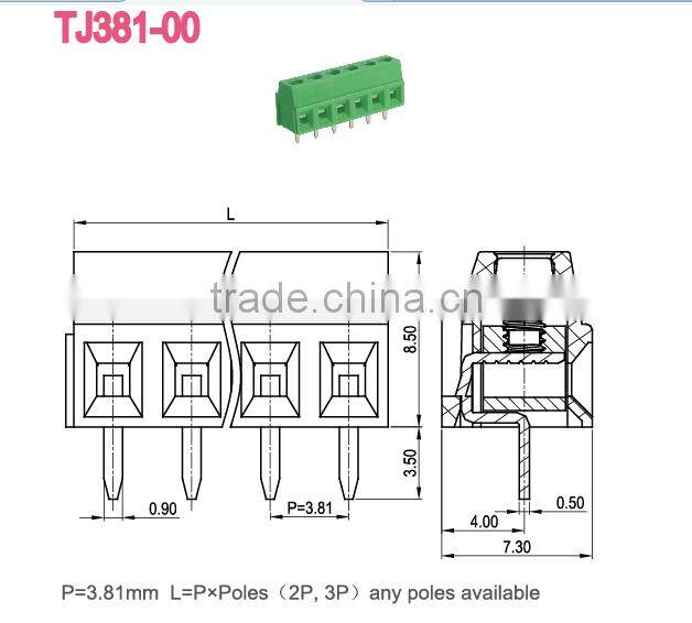 Electric Terminal Block Brass Connector 3.81 Pitch Screw Series for Electronics