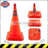 Collapsible road cone is small, easy to be installed and carried. The weight of collapsible traffic cone can be increased in order to anti-wind and anticollision. Top and bottom LED flash lights are optional for better visibility in the dark.