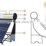 This system uses the thermosiphon principle, Solar vacuum tube is pluged into the bottom of water tank, The water is filled inside the solar vacuum tube,