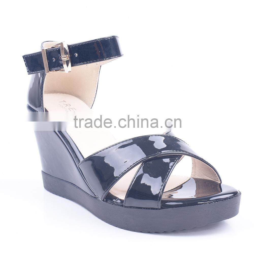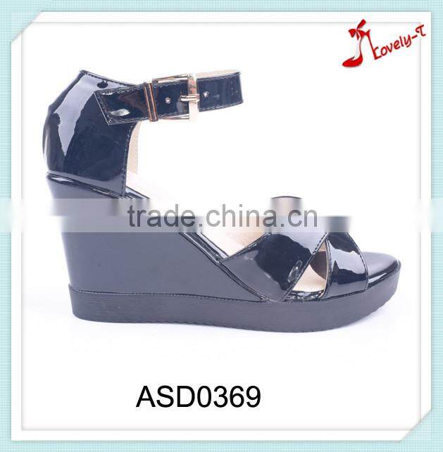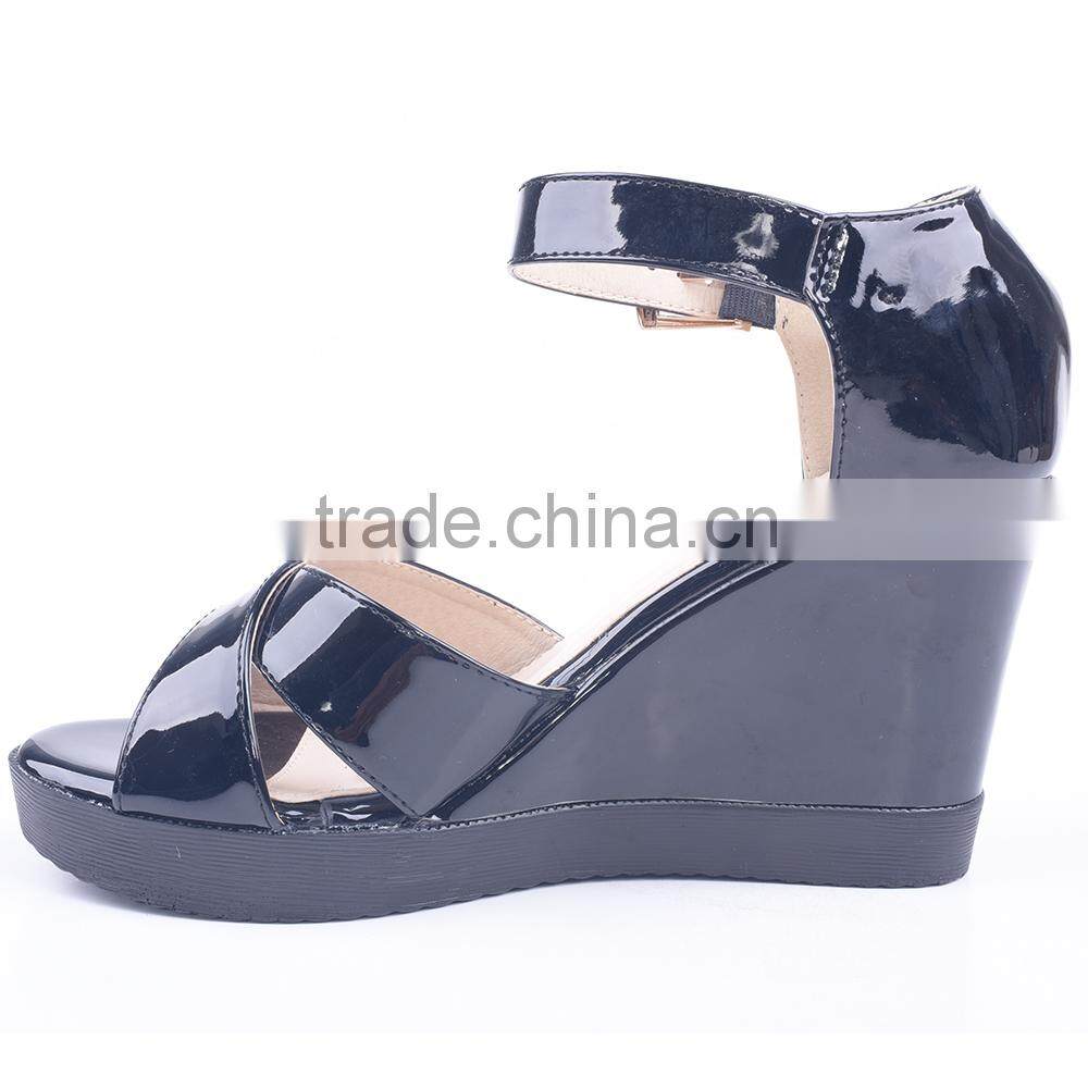 2016 new style high heel platform wedge stylish woman sandals cheap with shiny upper