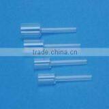 This is clear fused quartz glass tube available as continuous machine drawn and automatic controlled tubing. This glass had the typical characteriastics of high purity, good spectral transmission, well controlled dimension and lower OH and so on. It serves as the first choice of heat resistant material for halogen lamps, mercury lamps, metal halide lamps and other quartz lamps. This glass can be supplied in the range of 3-260mm outside diameter, 0.5-8.0mm wall thickness and 10-3000mm length. Exhaust tubes with good CPK are suitable for high-speed streamline production. And further processing of trim cutting, fire polishing, bending and pinching and etc. can be done according to the requirement of customers. OH-content can be controled within 20ppm15ppm10ppm5ppm2ppm according to the requirement of customers.