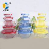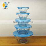 Waving Glass Bowl Sets With Colored Plastic Lid
