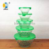 Home > Products > Glass Fruit Bowls & Glass Lamp Shade > 5 Piece Set Storage Glass Bowl With Plastic Lid