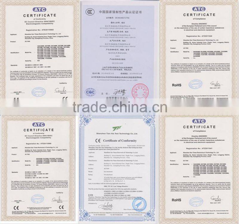 Company Information Shenzhen Son Times Electronics & Technology Co., was founded in Aug., 2003, which was located in Building 52, Xinxia industrial zone, Pinghu town, Longgang District in Shenzhen city. Our company is a high-tech company which integrates R&D, design, production and marketing on the field of AC and DC fans. And our company is the first first manufacturer in the same trade that first produces both AC and DC fans. Many certificates have been certificated in our company, such as CE, RHOS,CCC and so on. Now our products are exported far to Europe, Middle East, Korea, Vietnamese, Japanese, Asia and our marketing networks have spread big cities home and overseas.