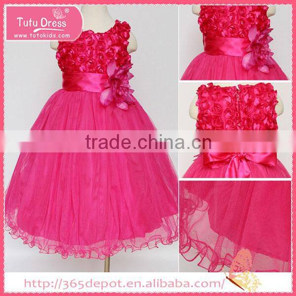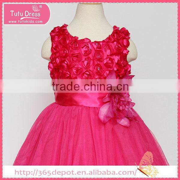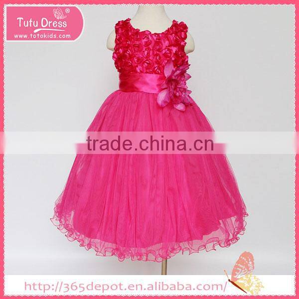Satin Fabric Baby Pink Rosette Prom Dress Tulle Skirt Children Frocks Designs Supplier's Choice