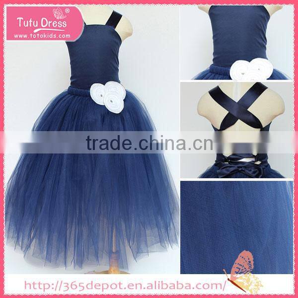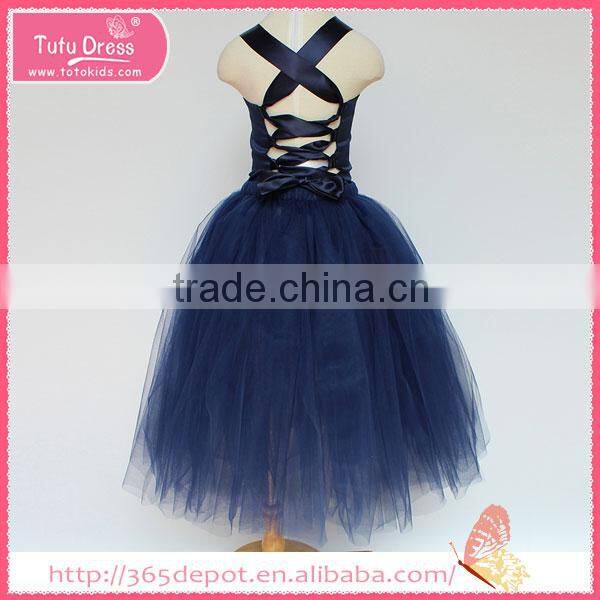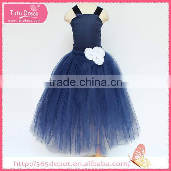 For Normal Occasion navy blue yarn party dress tulle skirt children frocks designs