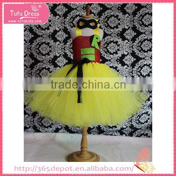 Home > Products > 2016 New Arrival > Ceremony Occasion Bright Yellow Cotton Dress With Black Mask Gauze Dress Halloween Costume Supplier's Choice