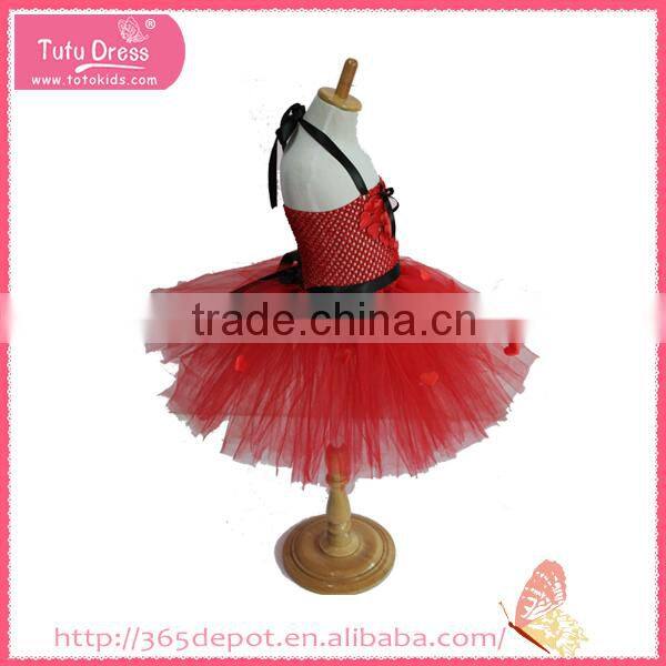 Lacework Rose Red Fluffy Frocks With Ribbon Wasitband Halloween Costume Gauze Dress