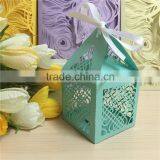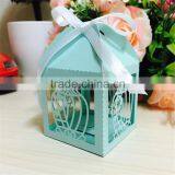 2016 New Design Blue Laser Cut Wedding Paper Candy Box With Ribbon