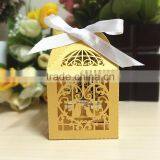 New Hot 2016 Glamorous Yellow Laser Cut Lovebird Candy Box for Wedding