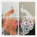 2016 New Design Elegant White Peacock Laser Cut Place Cards for Wine Glasses
