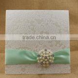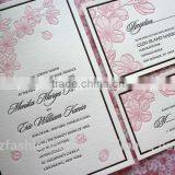 2016 Hot Sale Customized Flocking Ribbon Elegant Luxurious Wedding Invitation Card