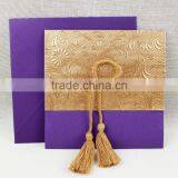 2016 New Product Custom Fancy Gold Purple Pocket Fold Wedding Invitations