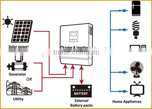 PS: When the system completely discharges off the electricity, system output would be shut down or convert to the state grid, when the solar system charges the amount in half, the system will automatically restore power supply again.