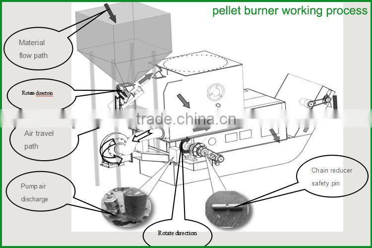 6. Biomass wood pellet burner stove easy operating,convenient Maintenance, automatic feeding, automatic discharging,automatic igniting, automatic control temperature ,automatic 24 working hours without unattended substation.