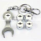 Car Logo Tire Wheel Rims Stem Valve Caps & Wrench Keychain Chrome