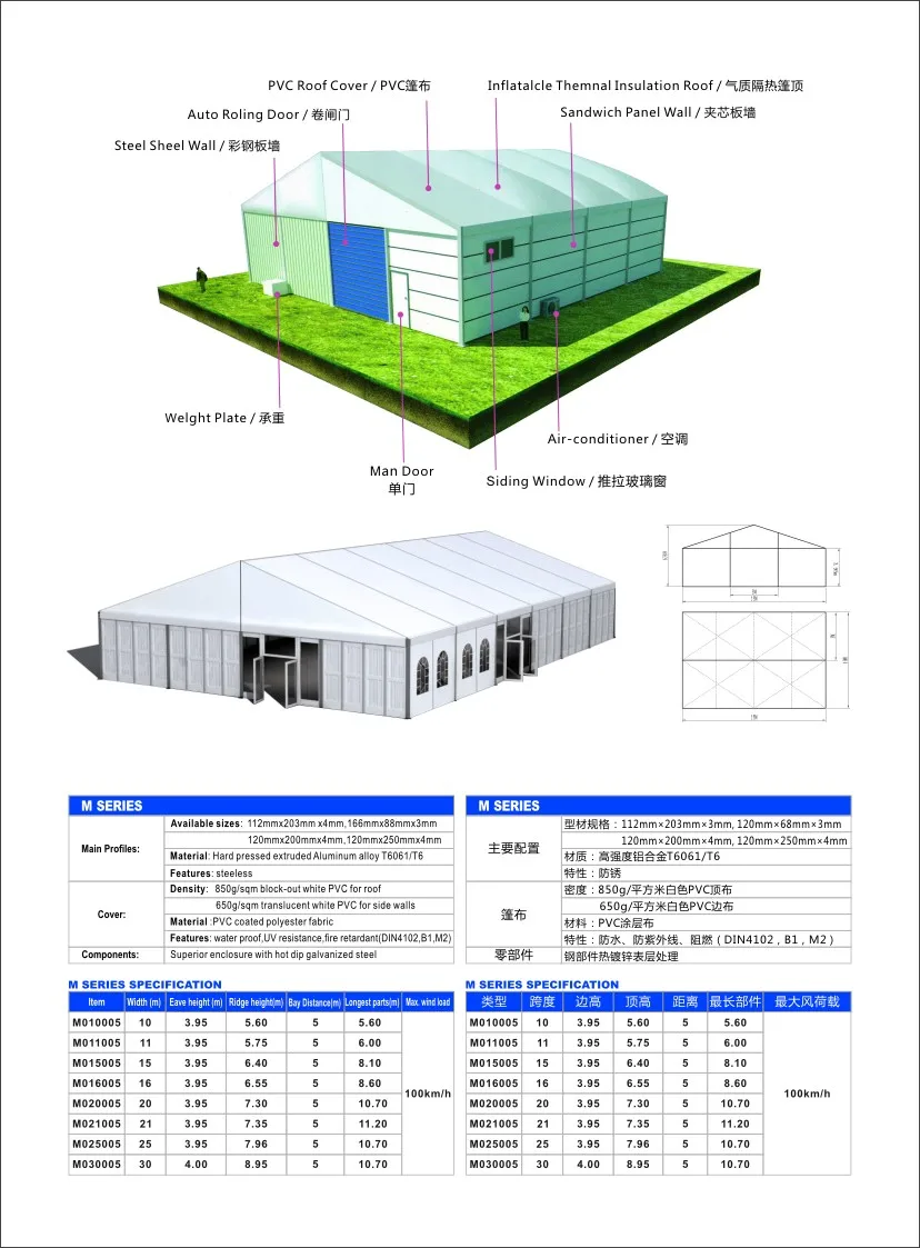 Our tents can be assembled and dismantled and repeatedly with small transportation distance. The lifespan of aluminum framework can reach 15-20 years, and 5-8 years for PVC fabrics depending on different conditions of usage.
