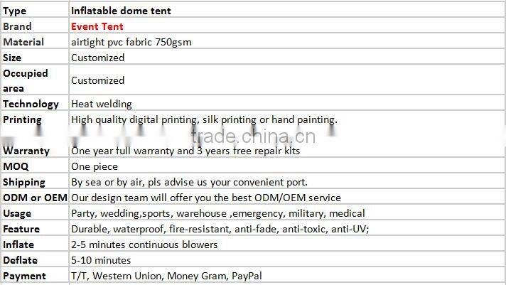 Dia 15m geodesic inflatable tent for outdoor events carpas domo para eventos