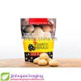 | Material layers | 1. OPP/CPP , PET/PE ,transparent material for clear 2. NY/PE for frozen, puncture resistent ,vacuum packing for food fresh , for nuts,snack etc 3. PET/NY/PE shock resistant, puncture resistent 4. PET/NY/CPP retort pouch for microwave and cooking 5. PET/AL/PE, PET/VMPET/PE, OPP/VMCPP light resistant,moisture resistant,antioxidant 6. PET/AL/NY/PE 4 layers,stonger,more straight,moisture resistant,antioxidant 7. PET/AL/NY/CPP for microwave and cook. heat resistant material |