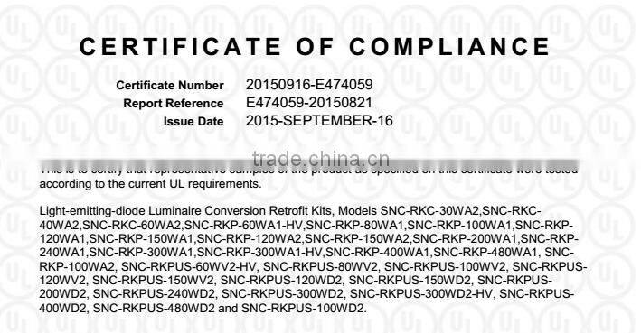 SNC UL CUL LUMILEDS LED Retrofit Kit 480W AC100-240/277V 5 Years Warranty