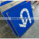 LED solar traffic sign is an environmental protection traffic signage, Adopt unique aluminum alloy board and solar board combined together, with the features that LED light luminous long distance, active luminous, combined with reflective film passive luminous, it make text and images with a reflective film also with LED warning light transmit to us, strengthen the warning effect in day and night. Especially in rainy and foggy weather, solar LED warning signage can give drivers and pedestrians potent warning to ensure traffic safety.
