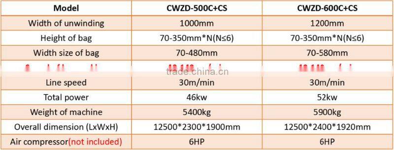 CW-400ZF High speed central sealing and four side sealing bag making machine