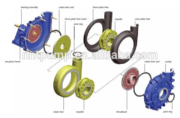 3). Frame plate for type pumps have replaceable wear-resistant metal( high chrome alloy ) liners