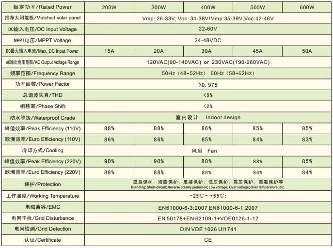 MPPT Design 200W 300W 400W 500W 600W Solar On Grid Inverter For Solar System