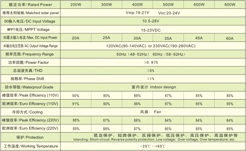 | Model Number | MGI-800W | Output Power | 500 - 1000W | |