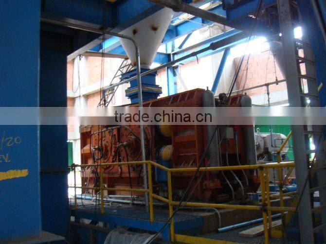 | type | diameter of roller(mm) | width of roller(mm) | max feeding granularity(mm) | max feed temp (°C) | pre-crushing capacity | main motor | weight(t) | |||