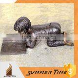 Reading Book on the Ground Boy Bronze Sculpture