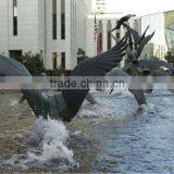 Lots of Bronze Birds Flying in Water Sculpture