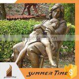 Reading Book on the Ground Boy Bronze Sculpture