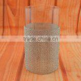 Large Size Glass Hurricane Lamp With Diamond Decor 9*9*20cm