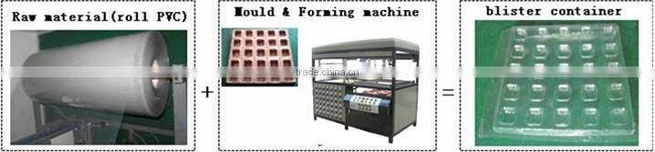 could pack products of various specifications by vacuum forming. It is suitable for plastic material like PVC, PET, PE, PP, HIPS, ABS etc.This model machine is fine workmanship,simple mechanism,easy to operate,steady performance,suitable for producing products in miniature.