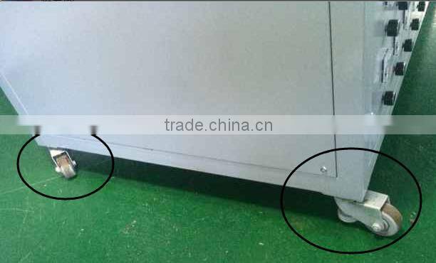 We are always keep moving , the new machine with wheeel . it is easy moving and will not corrosin your floor board .