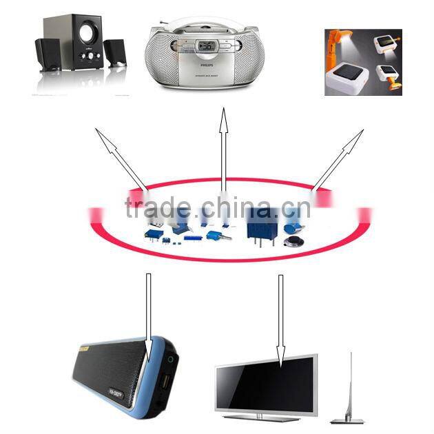 1.As a voltage divider:Potentiometer is a continuously adjustable resistor. When potetiometer’s stem or sliding handle move on the resistor body, the output of the potentiometer can be obtained output of voltage with certain related to the potentiometer applied voltage and movable arm or travel .