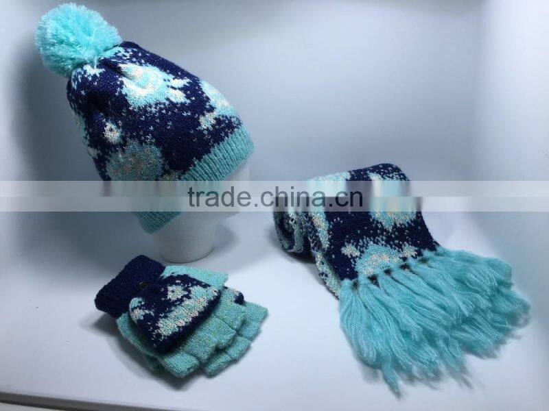 Various Design Jacquard Fashion Winter Knitted Scarf Hat Glove Sets