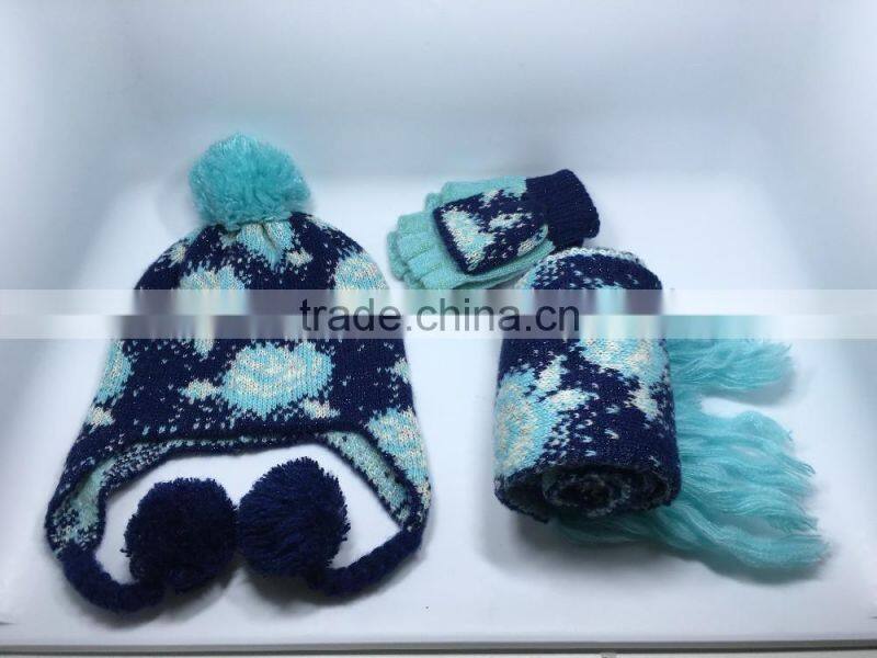 Children Fashional Kintted Jacquard Winter Hat Scarf Gloves Set