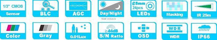 8.24pcs Ø5 LEDs, up to 25m IR distance