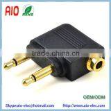 Gold Plated Airplane Headphone Audio Converter Adapter For Double 3.5mm Mono Plug To 3.5mm Dual Channel Stereo Jack