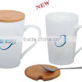 12 OZ Ceramic Cup With Bamboo Lid and Spoon for Promotion